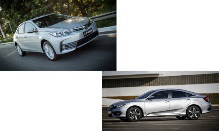 Na oitava posição vem o Toyota Corolla, que, mesmo perdendo uma colocação no ranking geral, segue na liderança isolada do segmento, com 19.413 emplacamentos, nada menos que 40,8% dos sedãs médios. Em seguida, no segmento, vêm o Honda Civic, com 8.417 unidades vendidas, e o Chevrolet Cruze, com 6.680 veículos.