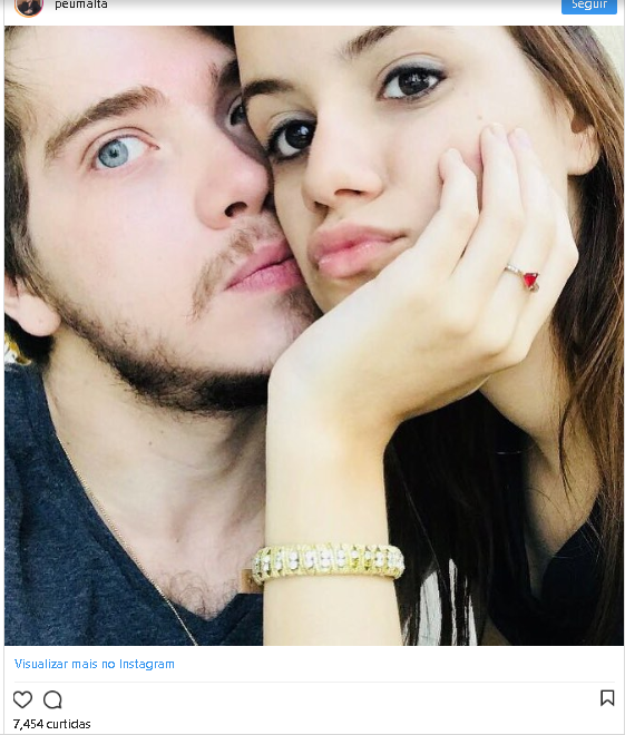 Pedro Malta, de 24 anos, publicou em seu Instagram uma foto com a namorada, Mariana Padilha, de 20 anos. "Vale as mordidas", declarou o ex-ator mirim, na noite de segunda-feira (28).
