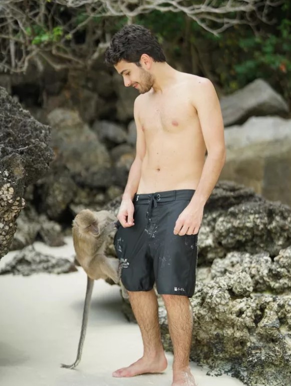 “Estava todo mundo brincando com eles na areia, uma galera dando comida, o que não acho maneiro — não demos comida para eles. E uma hora fui sentar na areia, perto dos macacos, e eles foram pular em cima de mim e me arranharam. Levei um susto e eles levaram um susto também”, disse Lugui, que exibiu os curativos em torno dos lugares afetados no corpo.