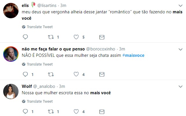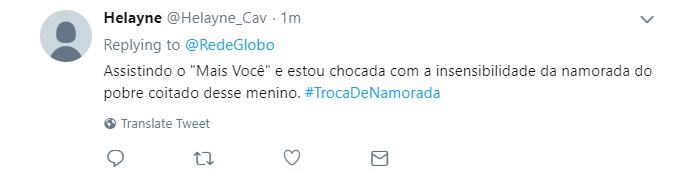 Internautas ficaram indignados com a atitude da garota. “Menina chata demais! Cinco anos nesse relacionamento egoísta?! Cai fora colega”, disse um telespectador. “Imagine a família e amigos do cara vendo esse programa. Aposto que ninguém gosta da Nicole e com razão…que mina vazia. Estou chocada real”, escreveu outro. Em defesa de Nicole, alguns ressaltaram que Pedro sabia que a namorada não gostava de surpresa. “Alguns não gostam e você não é obrigado a fingir que gostou de algo pra agradar os outros”, falou um terceiro.