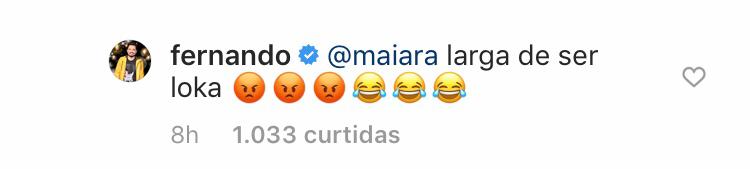 Nos comentários, é possível ver que os seguidores de Fernando se dividiram. Enquanto alguns riram da interação entre o casal, outros criticaram a atitude de Maiara. Houve até quem disse para o sertanejo que ele combina mais com a influencer.