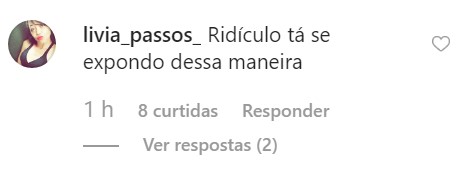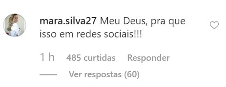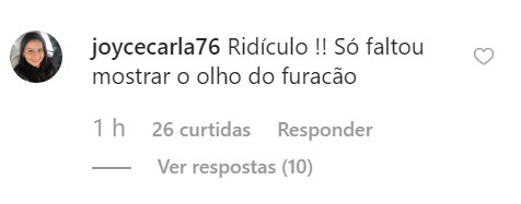 “Ridículo. Só faltou mostrar o olho do furacão”, “Falta de respeito uma foto assim”, “Meu Deus, pra quê isso nas redes sociais?”, “Desnecessário”, “Sem sentido” e “Isso é arte?” foram algumas das reações.