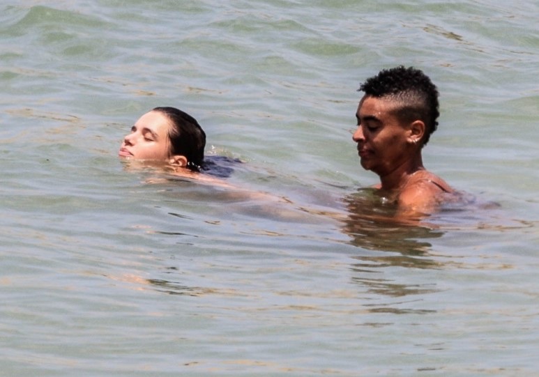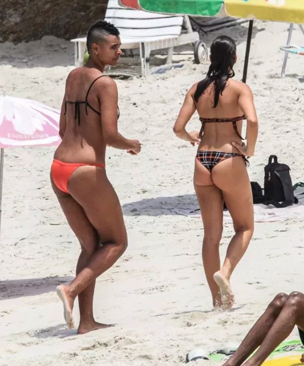 Bruna, porém, foi flagrada em um momento íntimo: ao emergir do mar, acabou deixando os seios à mostra. Ela logo tratou de ajeitar o biquíni e fez pose para os paparazzi.