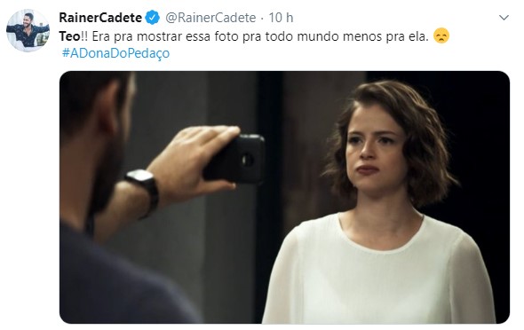 Até Rainer Cadete tirou sarro da estupidez do personagem. “Teo! Era pra mostrar essa foto pra todo mundo, menos para ela”.