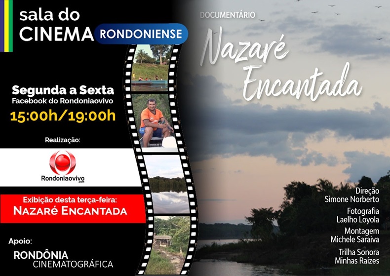 A transmissão é de segunda à sexta na página do Rondoniaovivo no Facebook a partir das 15h. O filme de hoje é Nazaré Encantada da cineasta Simone Norberto. A película mostra a comunidade de Nazaré, no Baixo Madeira. O documentário retrata uma leitura pós-colonial das manifestações culturais da comunidade.