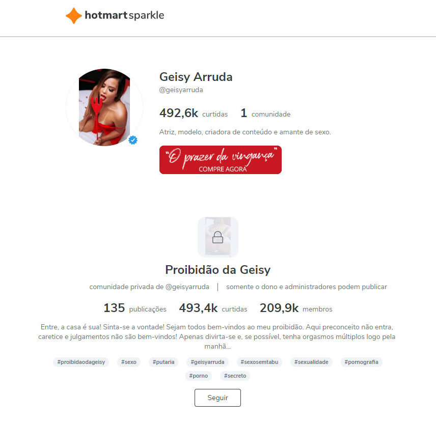 A influenciadora criou uma página no Sparkle para criar a comunidade Proibidão da Geisy, onde compartilha conteúdo apenas para maiores de 18 anos