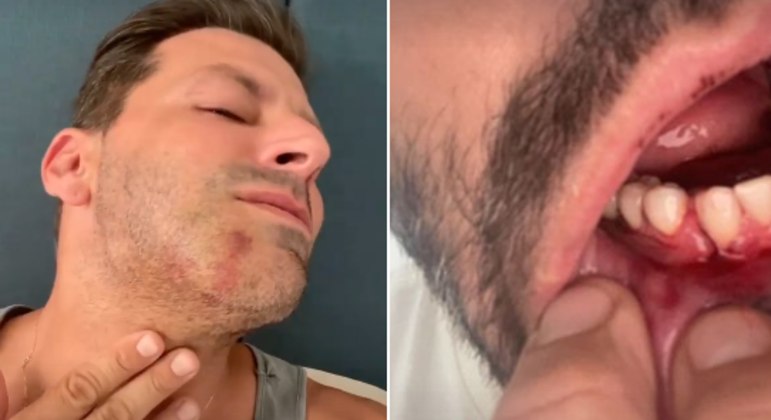 "Pensava apenas na minha família, nos meus filhos. Fiquei com muito medo de ficar com sequelas pra sempre. Minha boca ainda tá torta, e ainda está muito inchado, muito roxo", mostrou o ator.