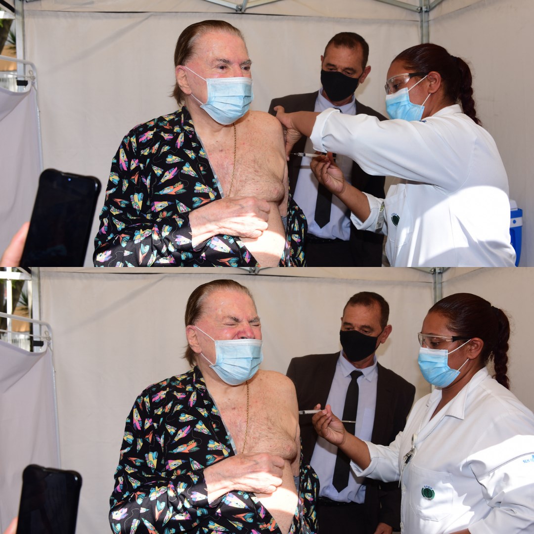 Silvio Santos tomou a segunda dose da vacina contra a Covid-19 nesta quarta-feira (10) em São Paulo. Ele estava vestindo um pijama estampado com aviões de dinheiro coloridos, da marca de seu neto, o ator Tiago Abravanel. O desenho foi feito em homenagem a Silvio para comemorar seus 90 anos.