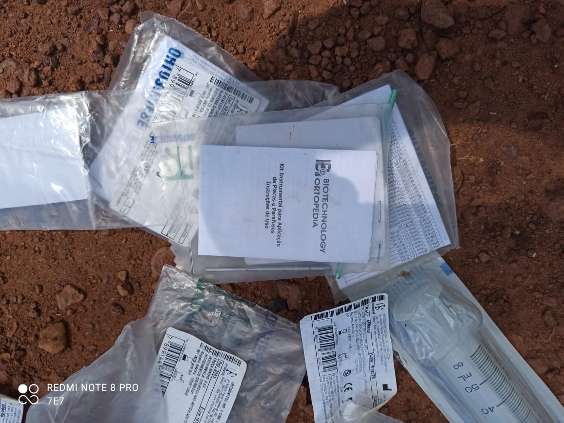 Caixas de papelão, carcaças de eletrônicos, seringas fechadas, embalagens de materiais hospitalares, baterias e até um estimulador elétrico de fisioterapia foram descartados no local. Algumas das embalagens jogadas na região carregam o nome da Socibra/Medical da Amazônia LTDA, uma distribuidora de Porto Velho, que vende produtos de papelaria e saúde na capital.