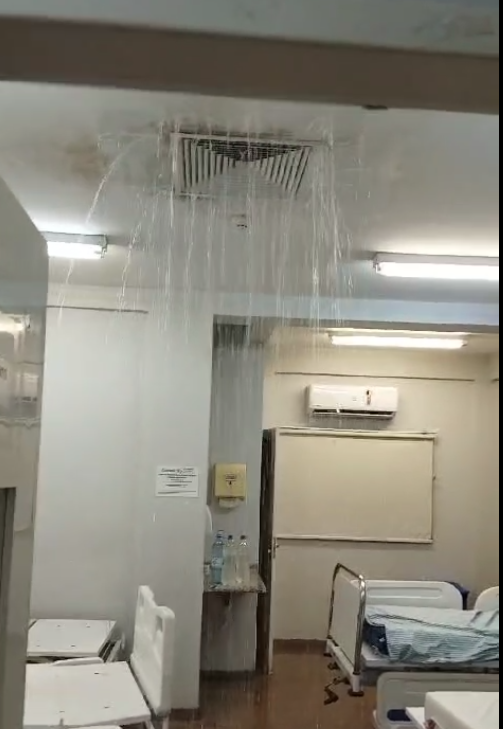 Rondoniaovivo, mostrando o momento em que a Ala 26 da maternidade é inundada por água que escorre do teto do prédio. Nos vídeos, é possível ver gestantes desocupando os quartos para se protegerem do aguaceiro.