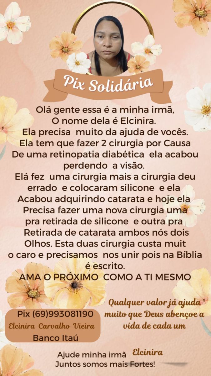 Desesperada por uma solução, a família de Elcenira faz um apelo a todos que possam contribuir, doando qualquer quantia para a chave PIX: 69 99308-1190.