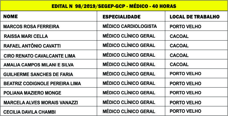A Gerência de Recursos Humanos (GRH) da Secretaria Estadual de Saúde (Sesau) convoca os aprovados no concurso de 2017, em várias categorias. O prazo do edital é de 1 a 30 de julho, porém, devido à urgência de contratação de médicos para o Pronto Socorro João Paulo II e o Heuro de Cacoal, a GRH está tentando localizar os aprovados o quanto antes. “Devido a essa urgência, de médicos, estamos enviando e-mail para todos os candidatos e não estamos tendo retorno. Pedimos que os interessados entrem em contato com nossa gerência para que possamos saber quem realmente pretende tomar posse ou não”, esclareceu Neucila Baratto, gerente do GRH/Sesau.