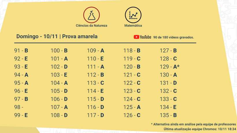 Resolução extraoficial da prova de exatas do Enem, em primeira mão, é resultado de parceria entre rede mineira Chromos e Eu, Estudante. Gabarito do Inep sai na quarta