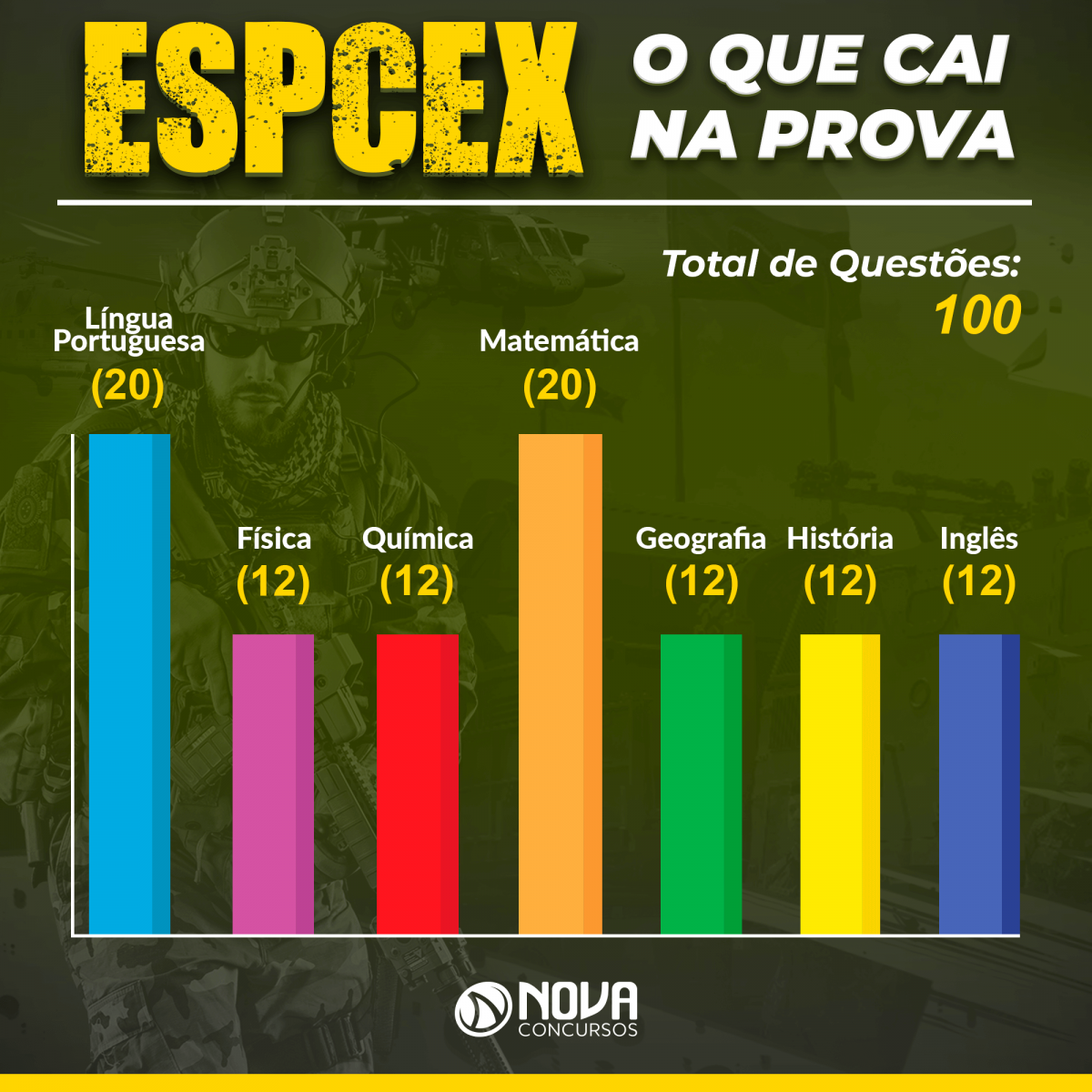– Geografia: 12 questões;