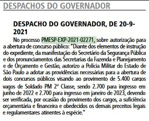 Situação: concurso PM SP autorizado