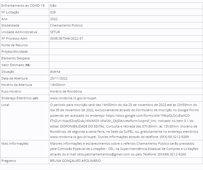 Detalhes da Licitação