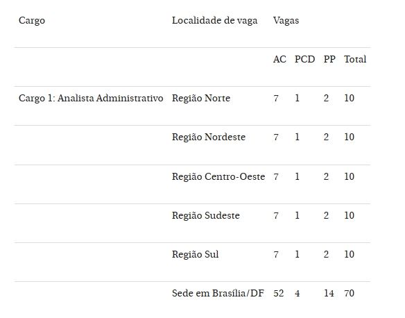 edital de abertura foi divulgado nesta segunda-feira (9/12) no Diário Oficial da União. As vagas estão distribuídas conforme o quadro a seguir: