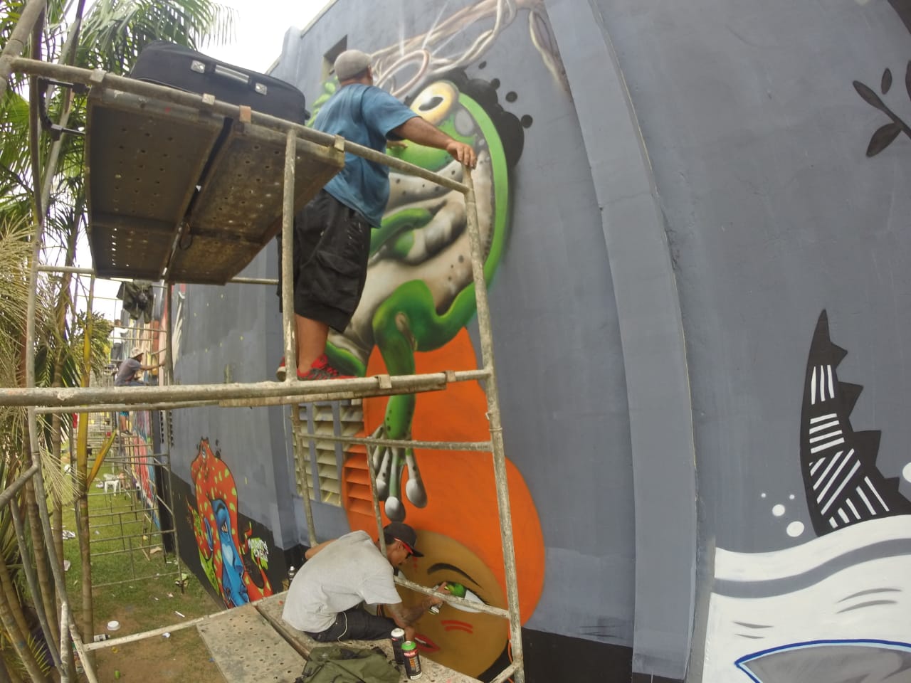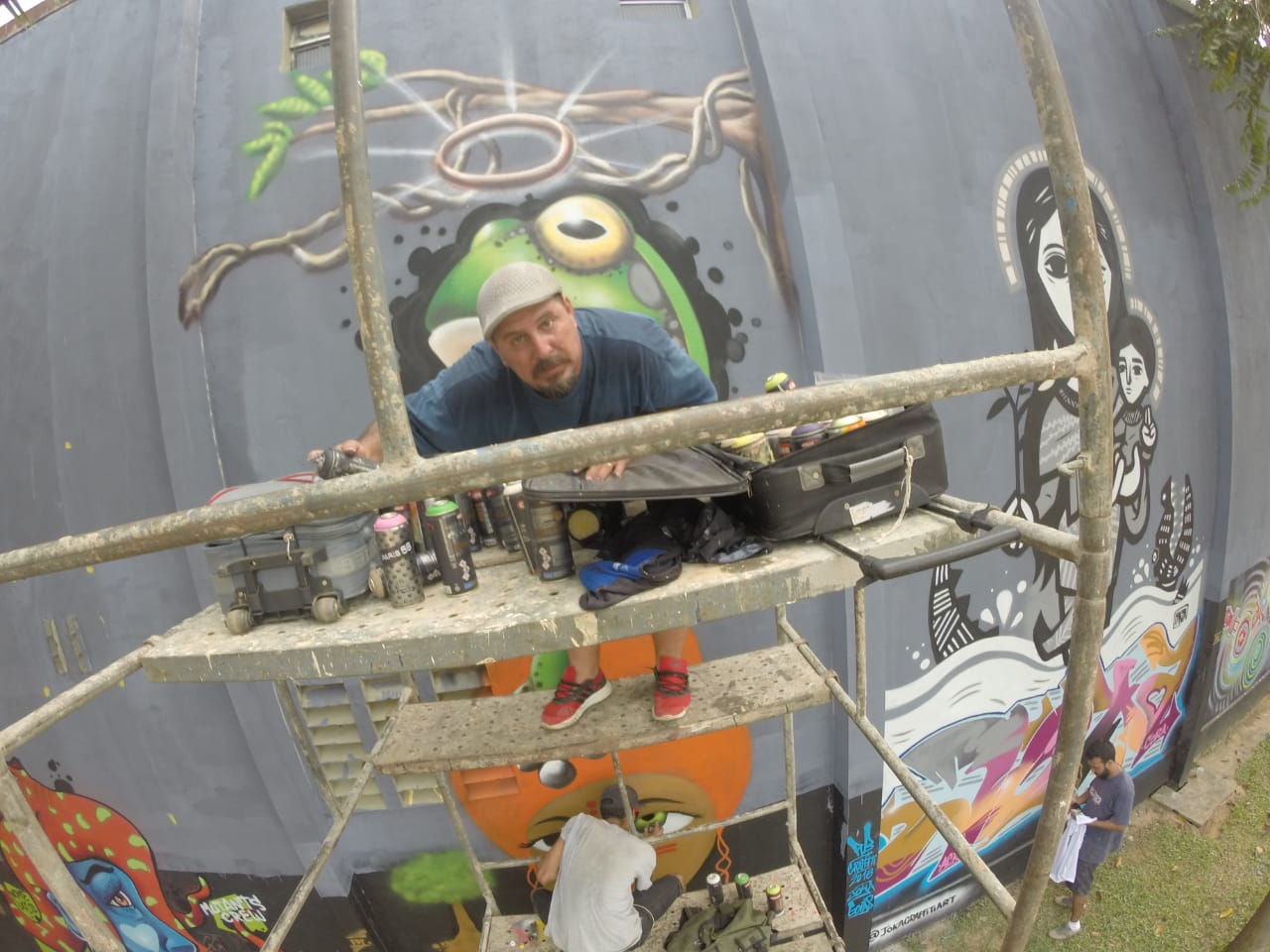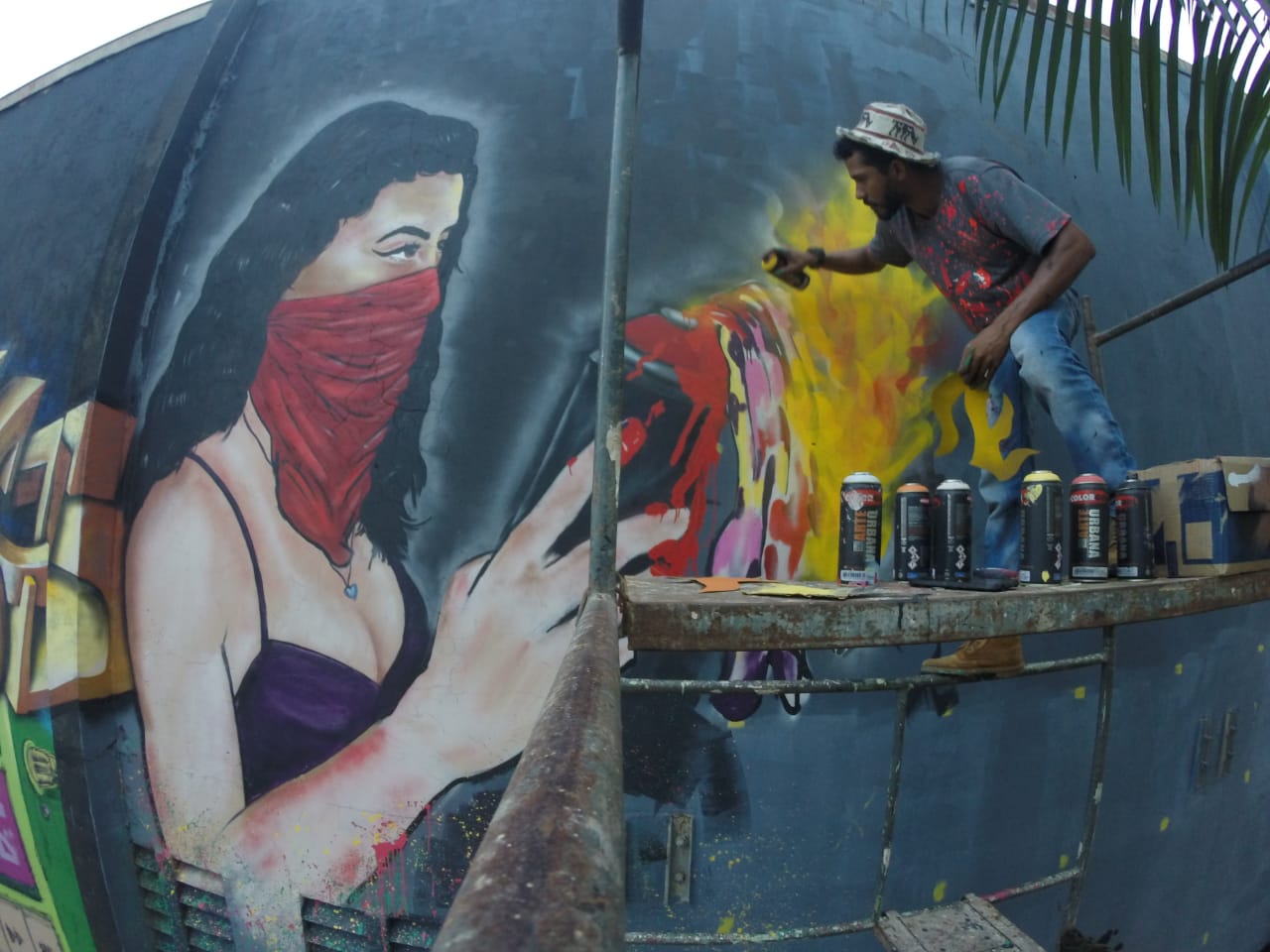 Os três grafiteiros de Porto Velho são Leonardo França (LeoGraffiti), Elias Santos (Rabsk) e Leandro Moraes (Dent ).