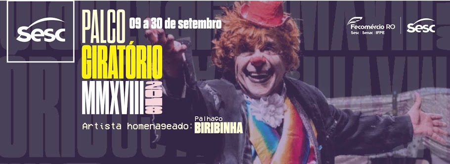 O Palco Giratório do Sesc versão 2018, está chegando a Porto Velho com todo seu aparato, no próximo dia 9 de setembro, Homenageando o Palhaço Biribinha.