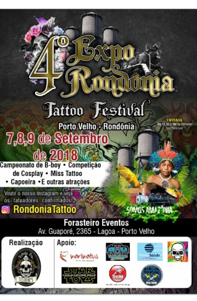 Vem aí o 4º Expo Rondônia Tatoo Festival, o maior campeonato de tatuagem da Região Norte.O evento acontece nos dias 7, 8 e 9 de setembro no Forasteiro Eventos.