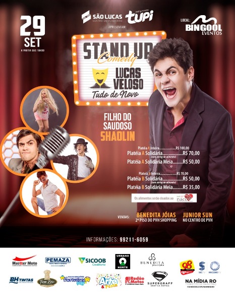 Pela primeira vez em Porto Velho o super show de humor com Lucas Veloso, filho do saudoso humorista Shaolin, dia 29 de setembro no Bingool Eventos.