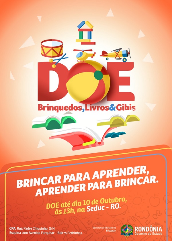 Em alusão ao Dia das Crianças, a Secretaria de Estado da Educação (Seduc) de Rondônia está realizando uma campanha de arrecadação de brinquedos, livros de literatura infanto-juvenil e gibis.
