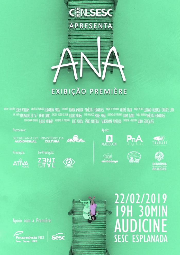O curta metragem Ana foi o único do região Norte a vencer o edital da Secretária do Audiovisual 2017, à época 1045 projetos foram inscritos por proponentes de todo o país, 45 foram selecionados. O lançamento do filme será realizado em parceira com o CineSesc no dia 22 de fevereiro no Audicine do Sesc Esplanada em Porto Velho, na oportunidade haverá uma roda de conversa sobre produção audiovisual no estado com a participação do elenco e parte da produção do curta metragem Ana.