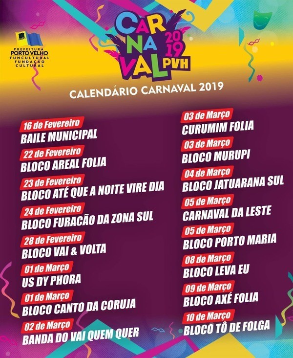 Segundo o presidente da Funcultural, Ocampo Fernandes, a Prefeitura de Porto Velho, através da Fundação Cultural de Porto Velho (Funcultural), tem oferecido apenas apoio institucional e em infraestrutura.