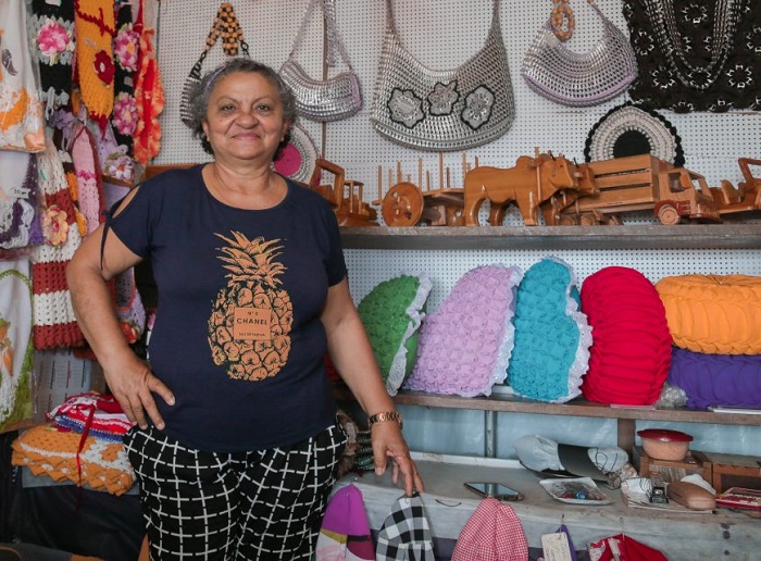 Com um sorriso estampado em seu rosto, Maria do Socorro lembra os dias difíceis que passou em sua vida até se transformar em uma artesã. “Há 15 anos eu perdi meu pai e, logo após, meu irmão. Meu mundo veio abaixo. Mergulhei em uma depressão e pensei que seria meu fim. Um dia fui fazer uma visita ao meu cardiologista e ele me disse que teria que ocupar meu tempo e sair de casa para ter uma vida social como antes.