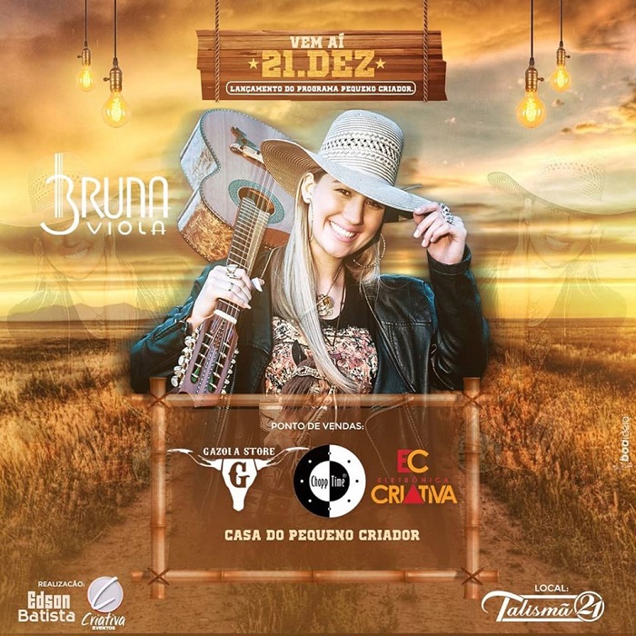 A cantora, compositora e violeira raiz Bruna Viola, 26 anos, vencedora do Grammy Latino de 2017, fará show especial em Porto Velho no dia 21 deste mês (dezembro), na Talismã 21, durante o lançamento do programa Pequeno Criador. A programação inicia às 22 horas. A produção é da Criativa Eventos.