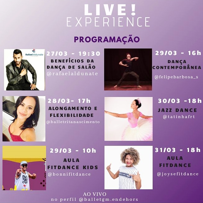 Já participaram do projeto ao longo da semana passada as professores: @rafaelaldunate ( dança de salão), @balletritanascimento (alongamento e flexibilidade); @bonnifitdance (fit dance kids) e @felipebarbosa_s (dança contemporânea).