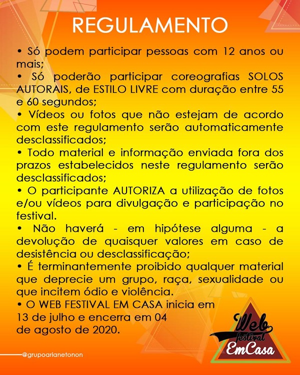 Só podem participar coreografias solos autorais, de estilo livre, com duração de 55 a 60 segundos.