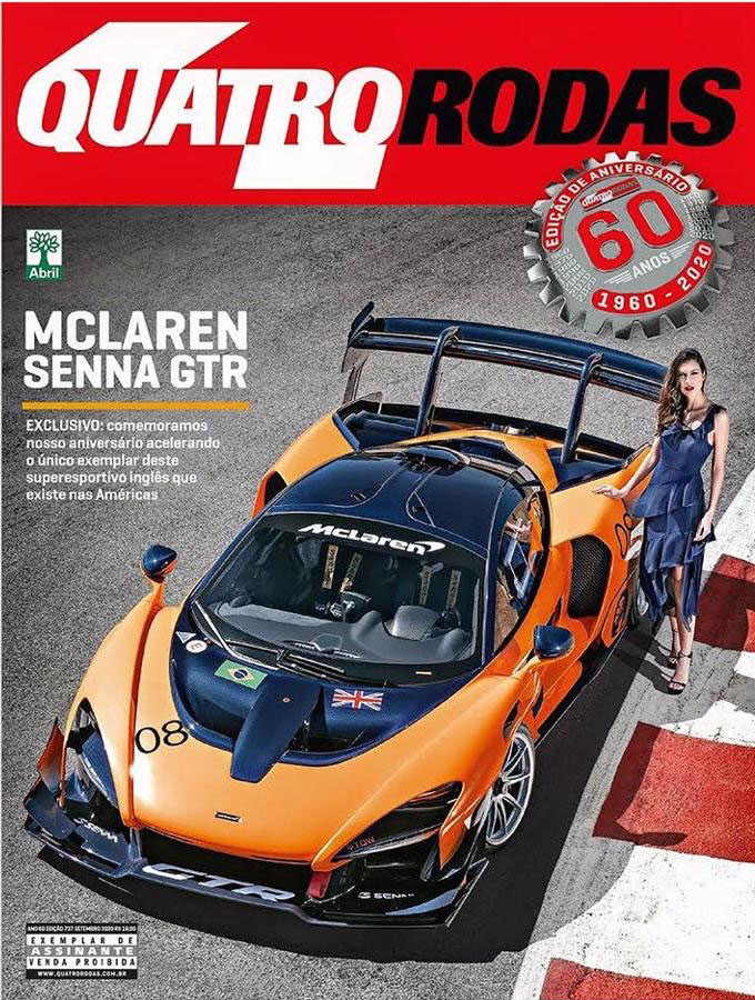 Na foto, ela aparece ao lado do único McLaren Senna GTR do Brasil. O superesportivo de 825 cv homenageia o piloto brasileiro, tem produção limitada - seis unidades no mundo e uma em solo nacional. Não pode rodar em vias públicas.