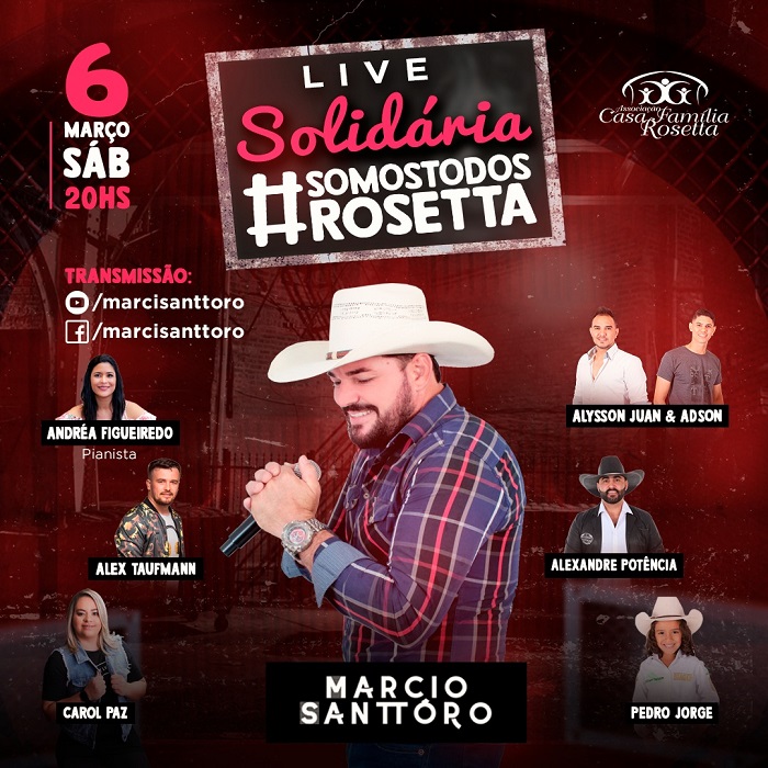 Artistas se unem para realizar live solidária e prol da Casa Família Roseta, em Porto Velho, RO. A ação será no sábado, dia 6 de março, às 20 horas, com transmissão pelo Youtube da Casa Família Rosetta.