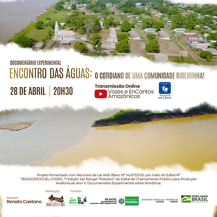 Nesta quarta-feira, 28, às 20h30, será lançado virtualmente o documentário experimental “Encontro das águas: o cotidiano de uma comunidade ribeirinha”. Para o idealizador do projeto, professor e produtor cultural Renato Fernando Caetano, o documentário é uma forma de valorização sociocultural dessa comunidade tradicional, que possui saberes e práticas específicas que precisam ser fortalecidas e registradas.