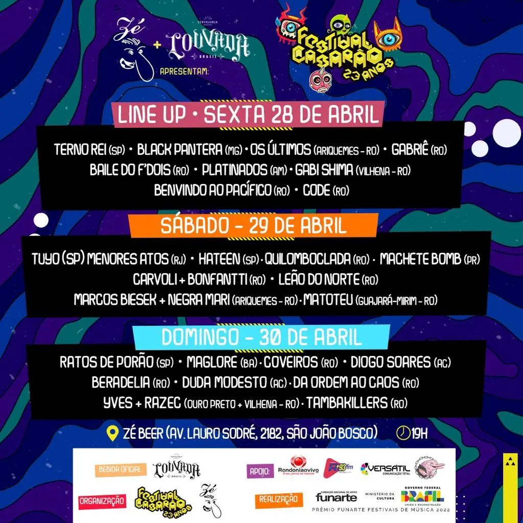 Com 27 atrações, a festa acontece de 28 a 30 deste mês. Serão dois palcos para as apresentações e, a cada dia, terá nove shows em cada um desses espaços. Esta é a sua .23ª edição.