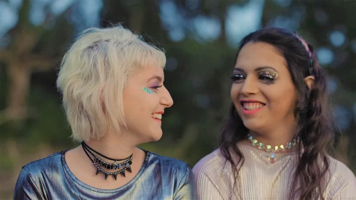 Imagem do filme Alice Júnior, na qual mostra duas adolescentes mulheres se olhando e sorrindo. (imagem: divulgação)