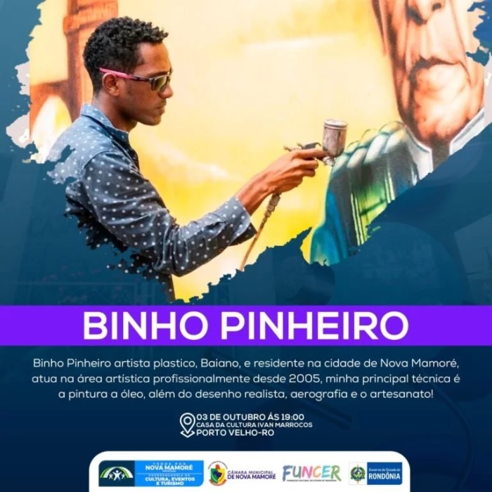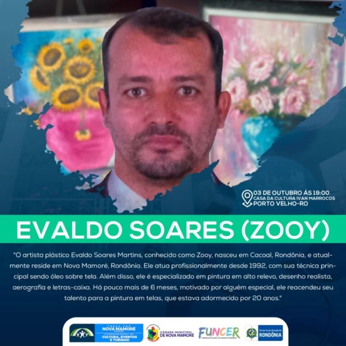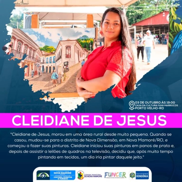 Quatro artistas visuais do município de Nova Mamoré, próximo de Guajará-Mirim, na fronteira com a Bolívia, estão expondo na Casa da Cultura Ivan Marrocos, em Porto Velho. Sãoa eles: Binho Pinheiro, Moises Rodrigues, Evaldo Soares e Cleidiane de Jesus A obras ficarão disponíveis ao público até o dia 3 de novembro.