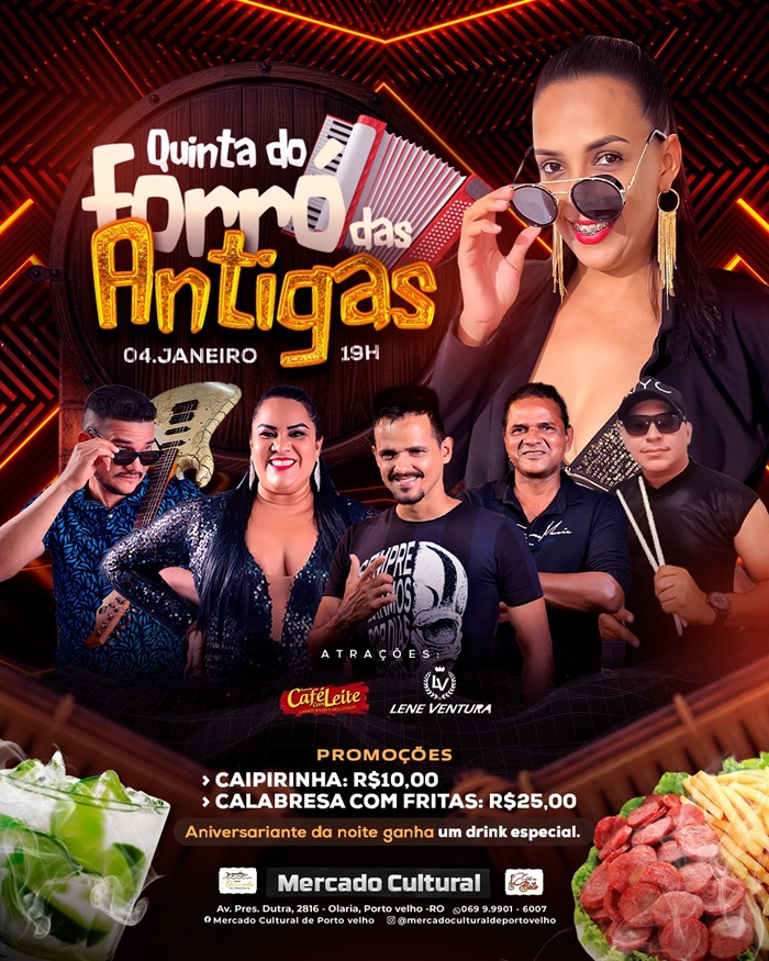 Todas as quintas tem o evento músical "Forró das Antigas" com duas atrações, na edição do dia 4, às 19h, tem show de Lene Ventura, na sequência, show da banda Café Com Leite.