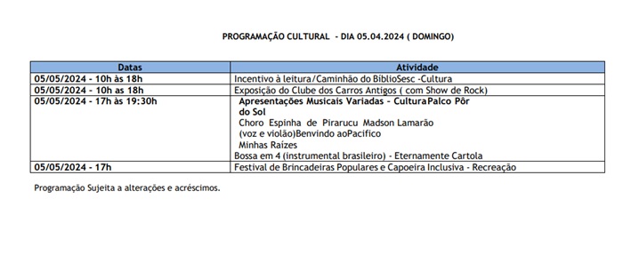 Os portões serão abertos às 10 horas da manhã com funcionamento estendido até às 22h (todos os dias). “Nosso objetivo é proporcionar aos visitantes uma experiência completa e memorável”, declarou Normando Lira, Relações Institucionais do Complexo Madeira-Mamoré. O acesso é gratuito.