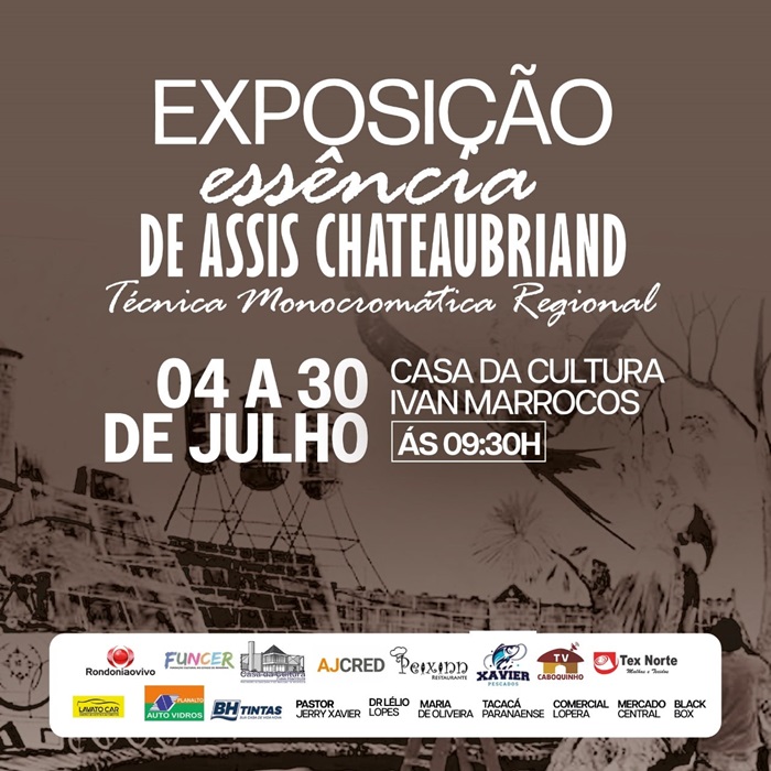 A abertura será na quinta-feira, 04/07, às 9h30. A mostra conta com o apoio do jornal Rondoniaovivo