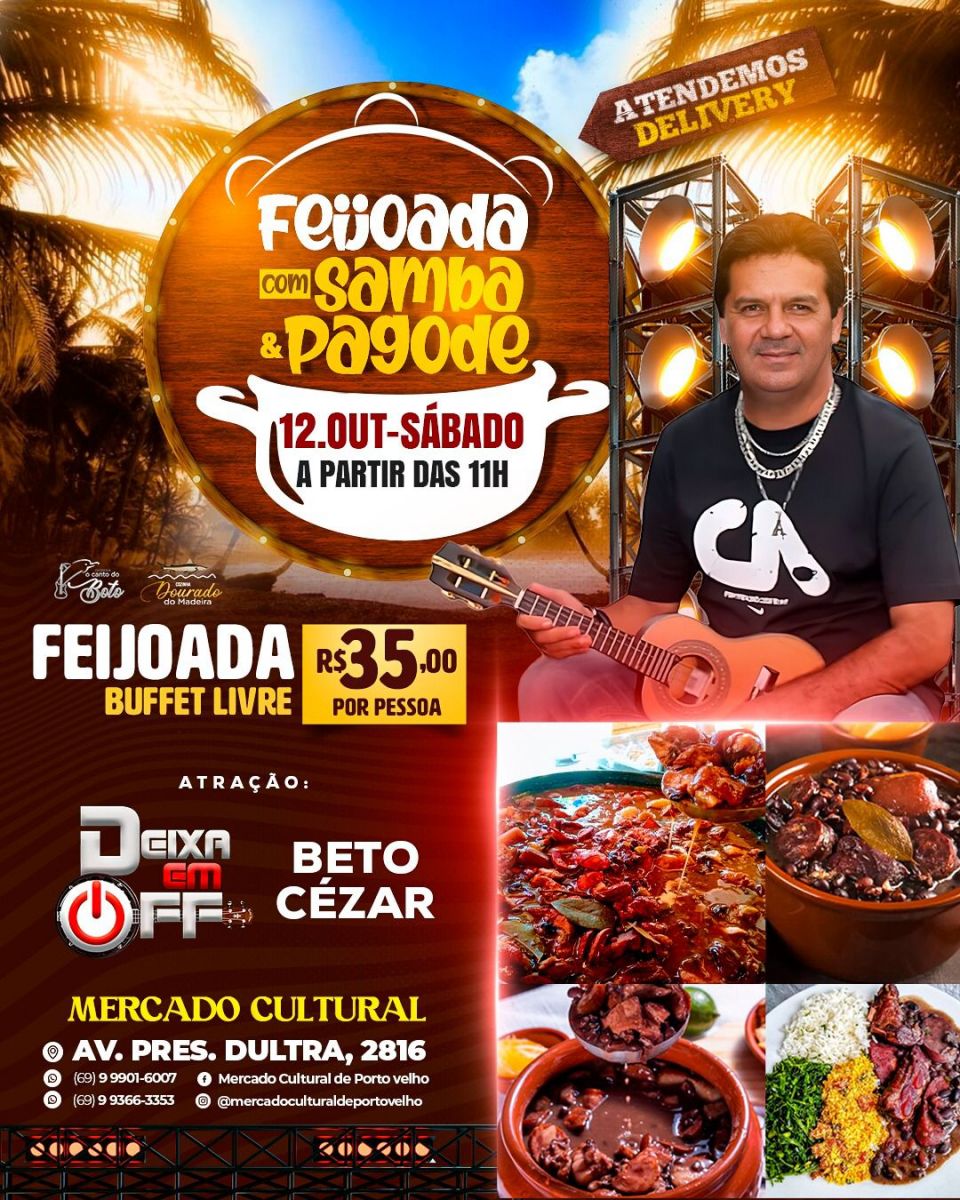 Já na tradicional 'Feijoada Com Samba E Pagode', terá vários atrações de grupos, começando a partir das 12h, com show do Grupo Deixa Em Off, com participação do compositor, sambista e cantor Beto Cézar, na sequência, às 16h, show do grupo Pagode Na Veia.