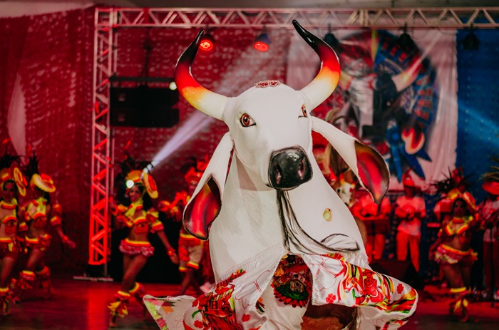 Divididos entre as cores vibrantes do vermelho e branco, que representam a Flor do Campo, e azul e branco, que simboliza o Malhadinho, os bois-bumbás trazem à tona as ricas narrativas do folclore amazônico, encantando o público com suas apresentações dramáticas e coloridas.