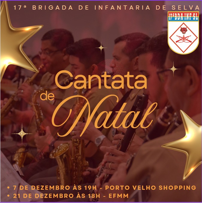 Em celebração ao período natalino, a 17ª Brigada de Infantaria de Selva fará apresentação especial neste sábado,07, às 19 horas, durante a Cantata de Natal no Porto Velho Shopping, e no dia 21 de dezembro, às 17:30 horas, no Complexo Madeira-Mamoré.