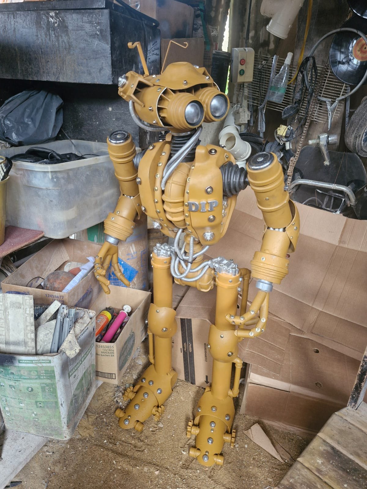 Já está em gravação o novo filme do Pistolino, personagem vivido pelo ator e cineasta Jair Rangel, que dessa vez terá um robô em cena interagindo com o personagem principal. Tudo foi criado e confeccionado pelo cineasta com tubos de PVC e peças usadas de veículos. Foram seis meses de produção até que o robô batizado como Dip ganhasse forma e movimentos.
