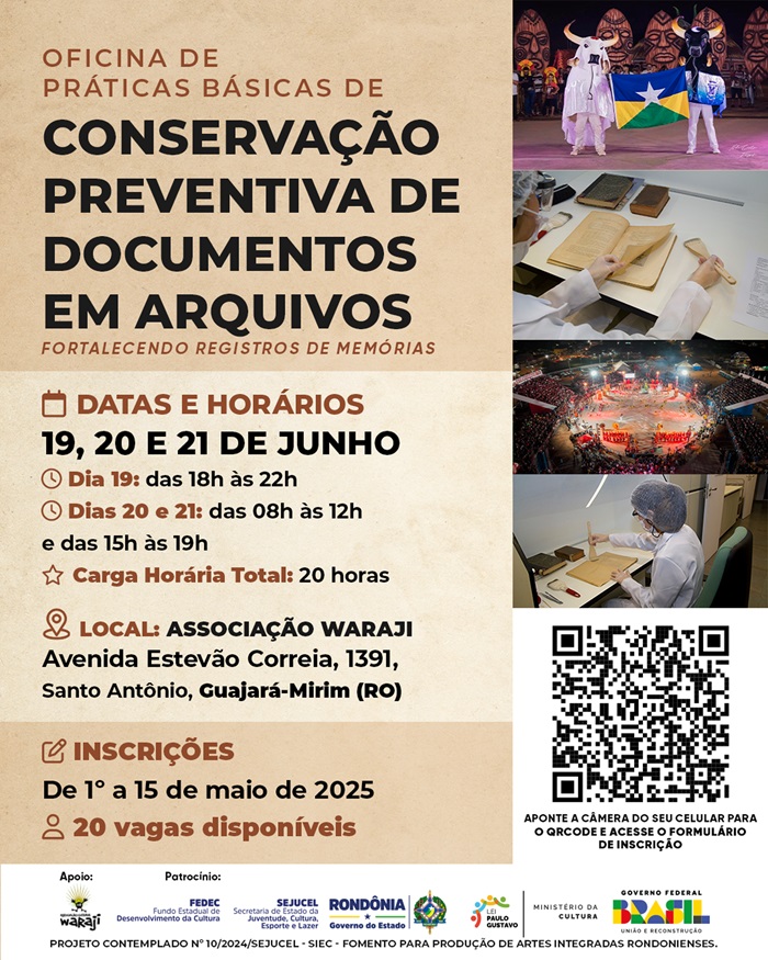 A Oficina de Práticas Básicas de Conservação Preventiva de Documentos em Arquivos - Fortalecendo Registro de Memórias, pretende valorizar a história de Guajará-Mirim, por meio dos seus registros, principalmente no que se refere ao tradicional Festival Folclórico Duelo da Fronteira, reconhecido como Patrimônio Cultural do Estado e do Município.
