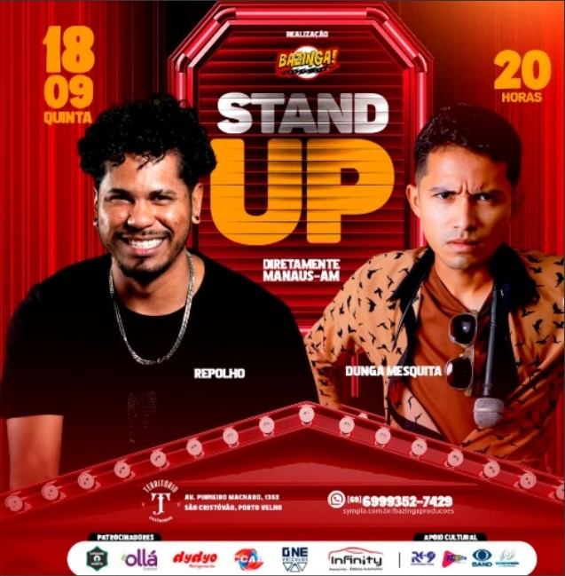 Os admiradores da comédia stand-up já tem local e data para se divertirem em Porto Velho, nesse mês de setembro e em outubro vai acontecer o “Bazinga Comedy Show”, com os maiores nomes da região norte.