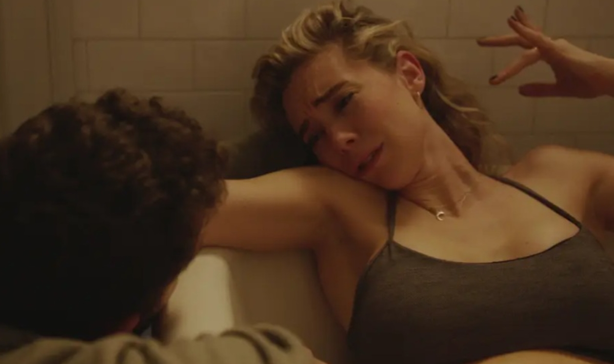 A mulher então passa a sentir as contrações e entre idas a banheira para relaxar e até se acomodar na cama nua, com o marido tentando acalmar, é perceptível a dor, a agonia e o sofrimento dela.