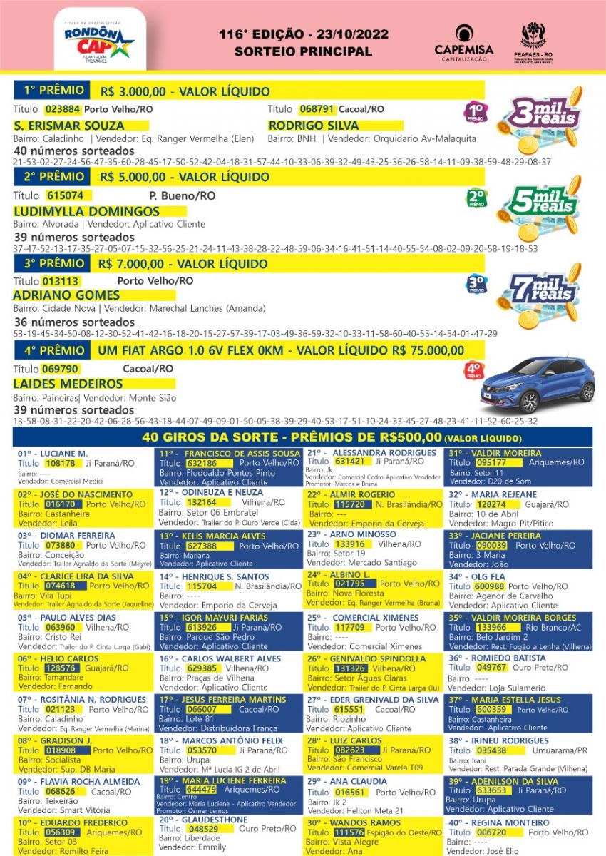 Quem ganha no Rondôncap todo mundo vê, conheça agora os ganhadores do último domingo: