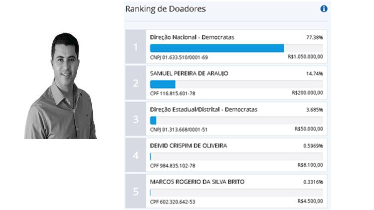 A maioria do recurso é de doação da Direção Nacional do seu partido o Democratas